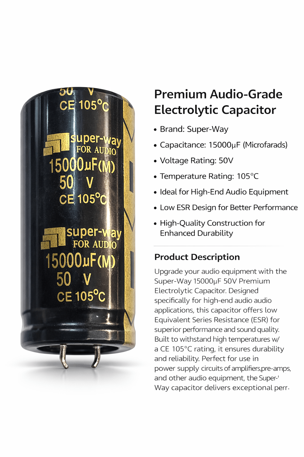 C1 Super-Way 15000µF 50V Audio-Grade Electrolytic Capacitor – 105°C